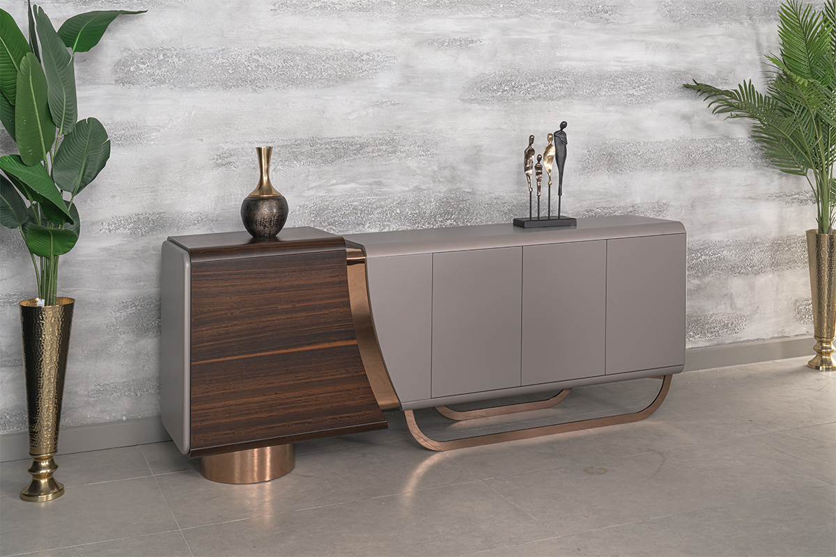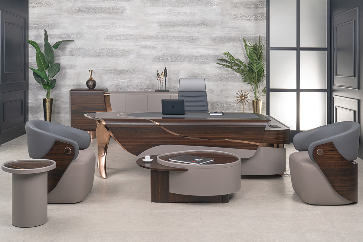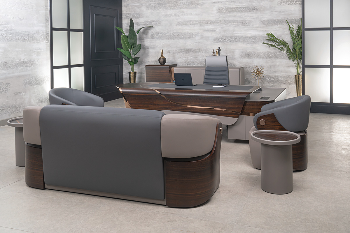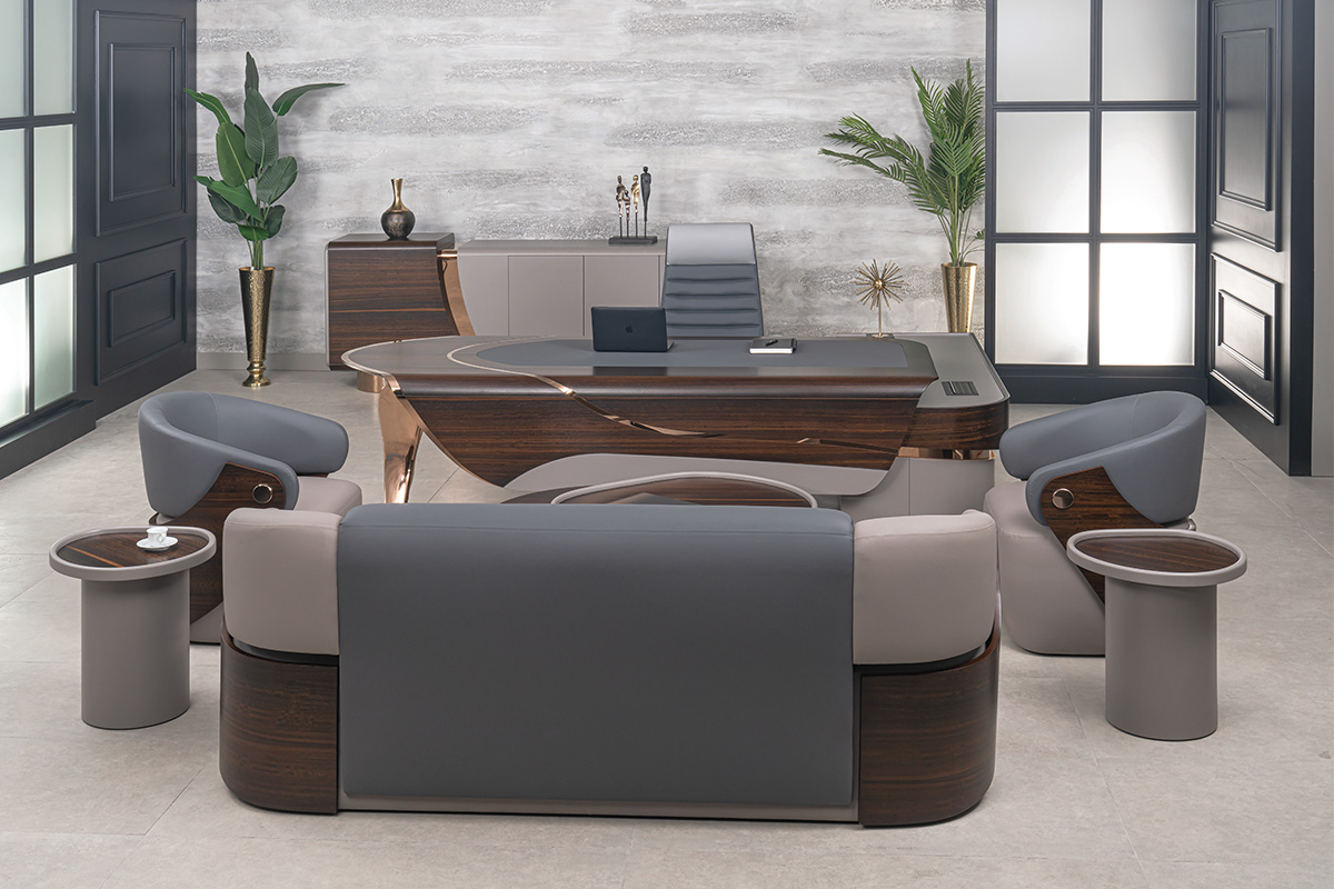Tasarımda, gelecek kurgumuzun en modern yansımasıdır. Segmentlerin algılarını yıkarak yeni bir alan açtığımız, genel kabul görmüş kriterleri altüst ettiğimiz bir tasarımdır. Asimetrik ve akışkan yapısıyla alışılmışın dışındadır. Genel yapısında DNA sarmallarının hareketlerini göreceksiniz. Modern yaklaşımdan ödün vermeden, malzeme seçiminde kalite ve lüks algısını ortaya koyduk. Tamamen doğal kaplama masif ve yüksek Türk işçiliğiyle cilalanmış; sektördeki en büyük çarpanımız olan hassas işçiliğimizden ve yüksek kalite iddiamızdan ödün vermedik. Tamamen döküm alüminyum ayak yapısı DNA formunu sembolize ederken, dönerek yükselen eğriyi temsil ederek semazenvari bir duruş sergiliyor. Tasarım ekosisteminin öncesi ve sonrasını bir mihenk taşı gibi ayıracak DNA setimizi siz değerli misafirlerimize sunmanın gururunu yaşıyoruz.
